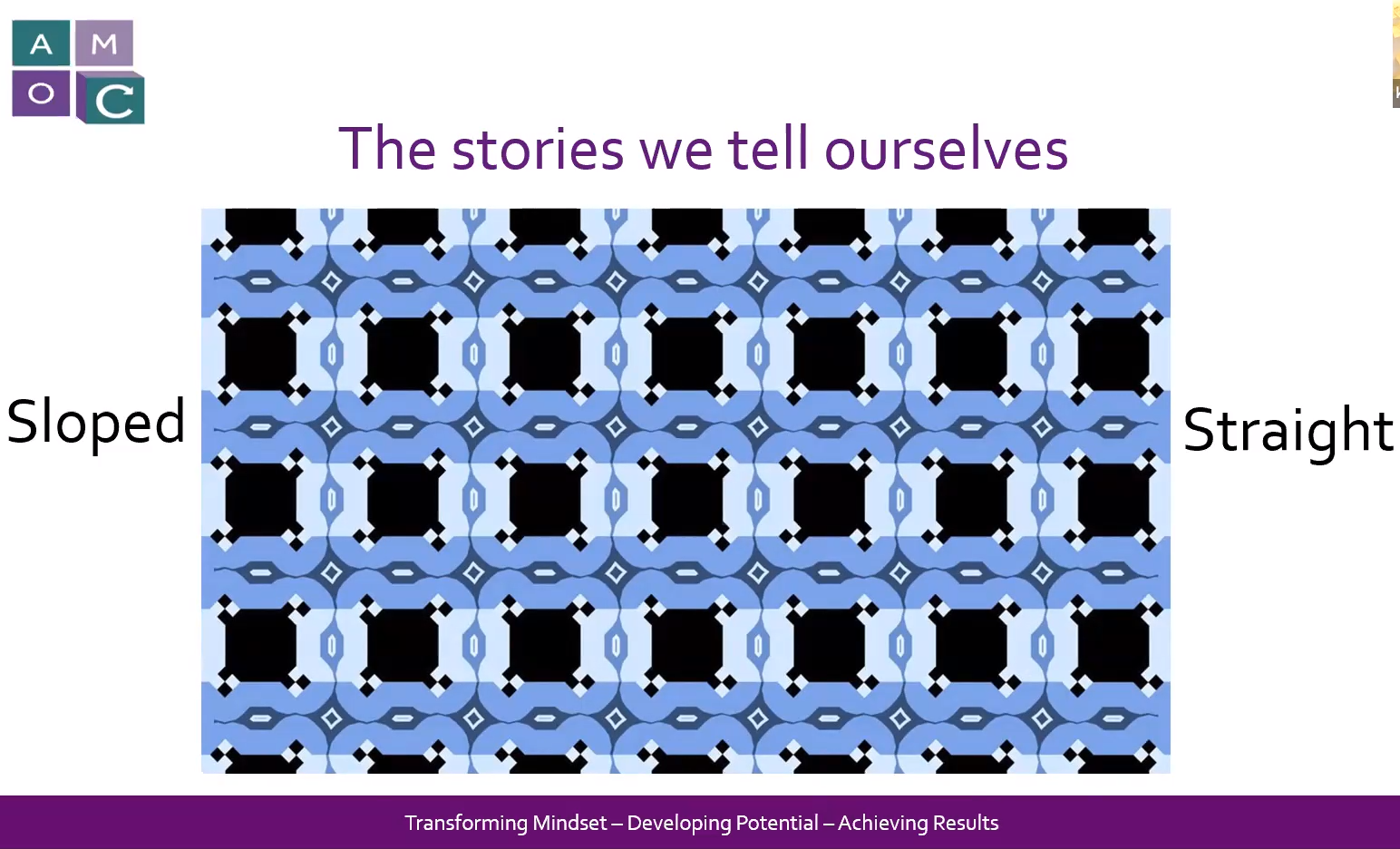 Stories and perception: The stories we tell ourselves are really important. We perceive the world according to our framework and our mindset. We are persuaded into validating our own beliefs and become fixated on our version of a story. We have to take responsibility for two things - what are you telling yourself (consider what stories are helpful and which aren't) and what stories are you telling at work. Consider what stories people are telling at work that you may need to re-frame for them.